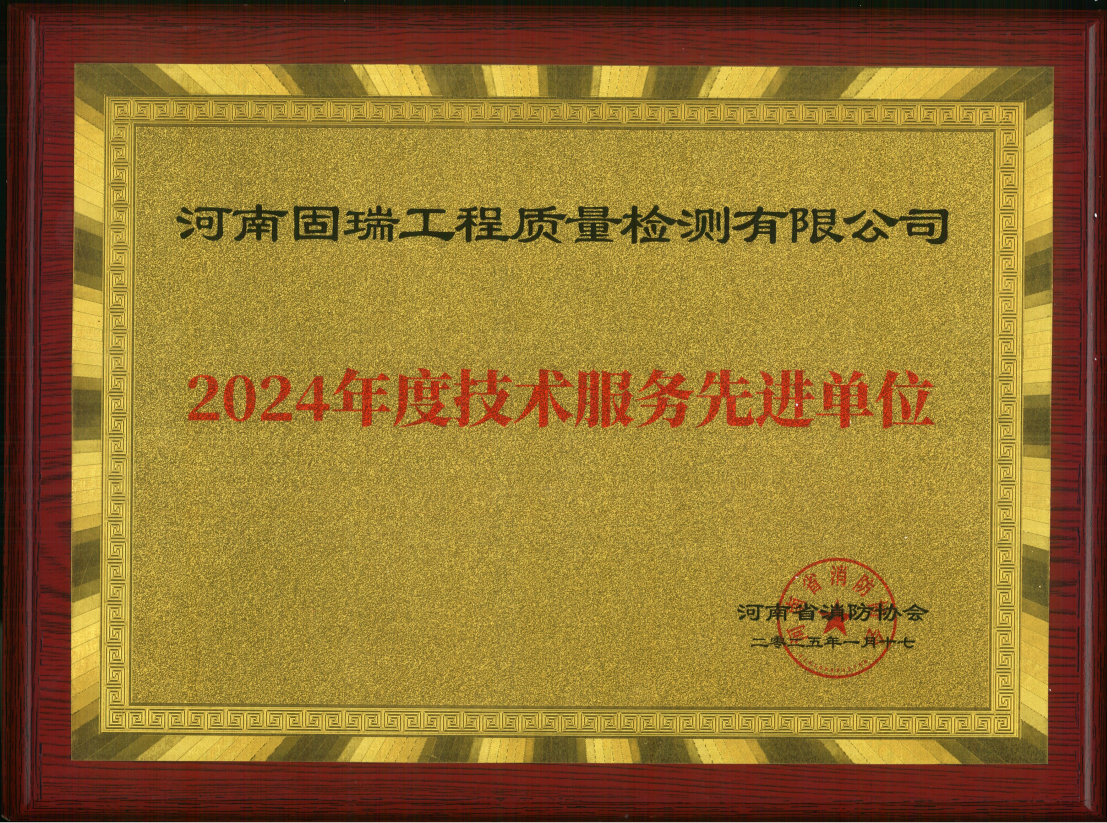 熱烈祝賀河南固瑞工程質(zhì)量檢測有限公司榮獲河南省消防協(xié)會(huì)2024年度技術(shù)服務(wù)先進(jìn)單位!??!