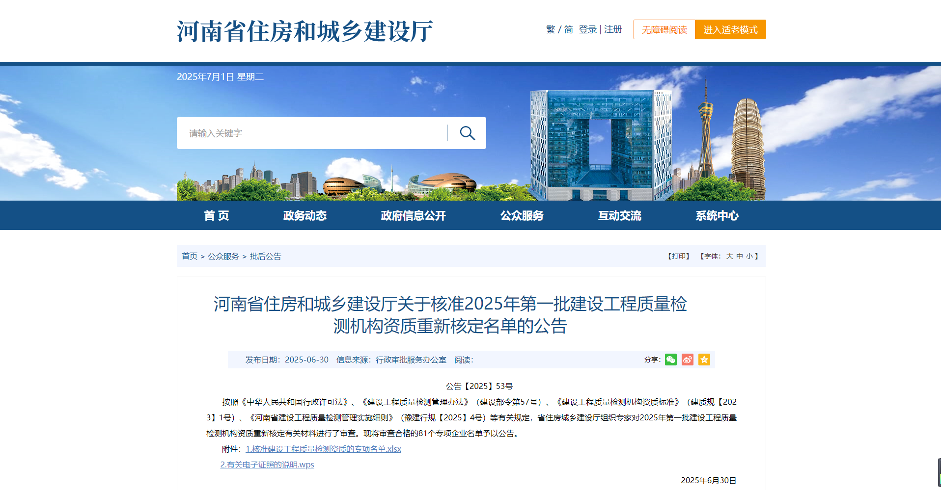 熱烈祝賀我司通過河南省住建廳2025年第一批建設(shè)工程質(zhì)量檢測機(jī)構(gòu)資質(zhì)重新核定?。?!